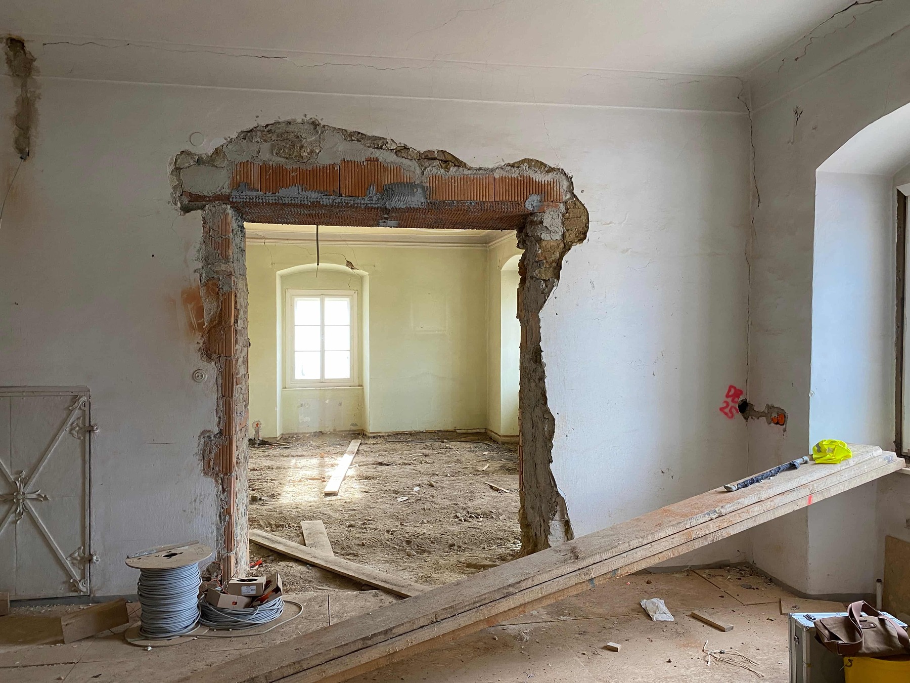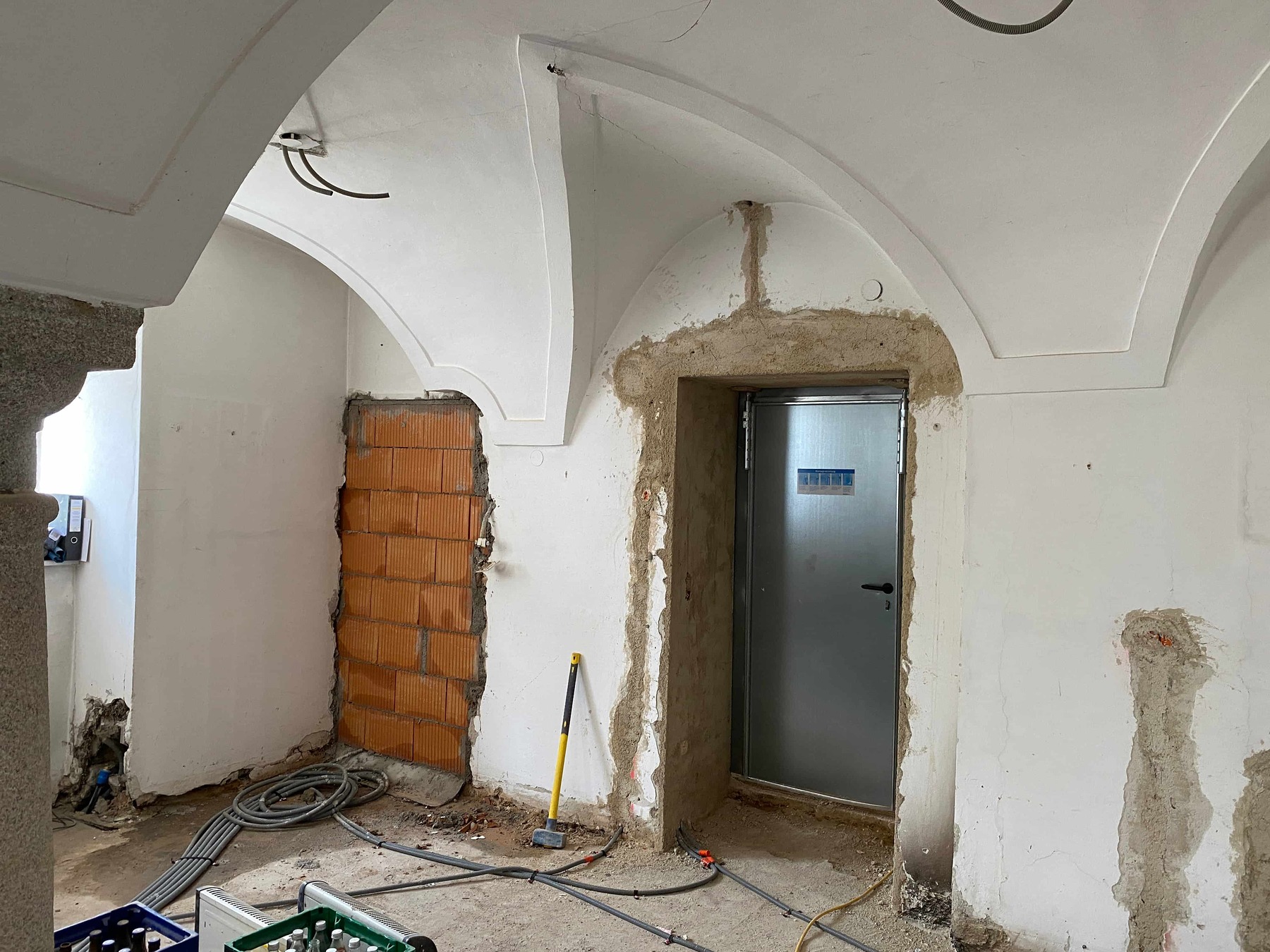 Mit Stand März 2025 sind die Baumeister- und Rohbauarbeiten weitgehend fertiggestellt und abgeschlossen. Die neuen Raumstrukturen sind somit bereits gut erkennbar. Auch die Roh-Installationen für Haustechnik und Elektrotechnik wurden bereits eingebaut.