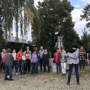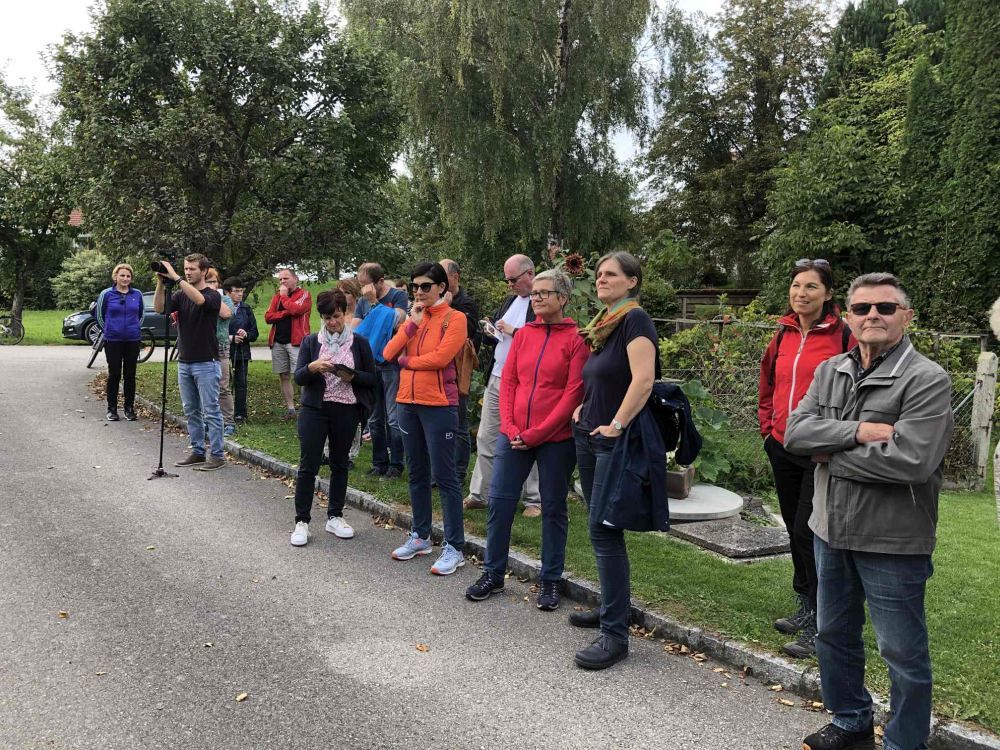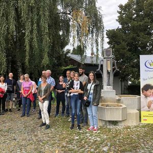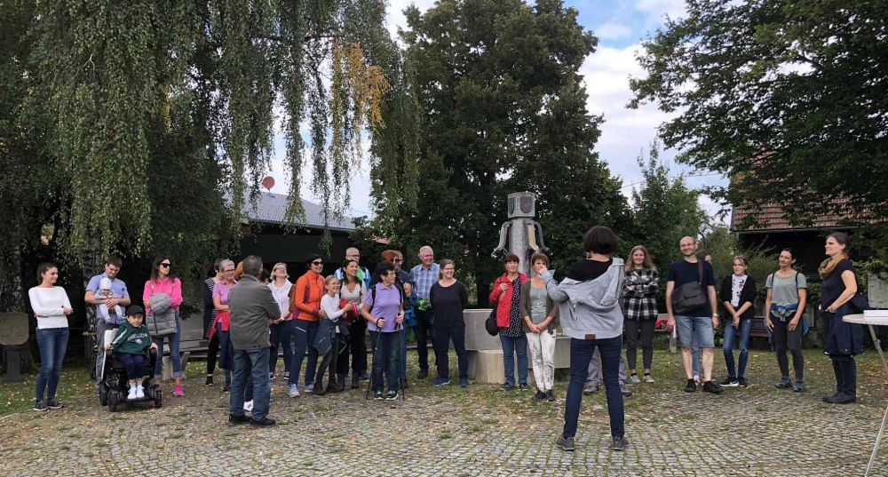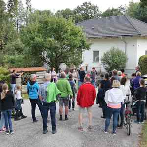 Vor 80 Jahren herrschte das NS-Regime und es gab auch Opfer in Weibern. Die Enkelin eines Opfers konnte gefunden und in die Vorbereitung miteingebunden werden. Der Familie wurde im Gedenken eine Station der Wanderung gewidmet, und zwar an dem Ort, wo sie verhaftet wurde und aus deren Haft sie nicht mehr zurückkam. (Folder "Im Gedenken Antonia Hamedinger")