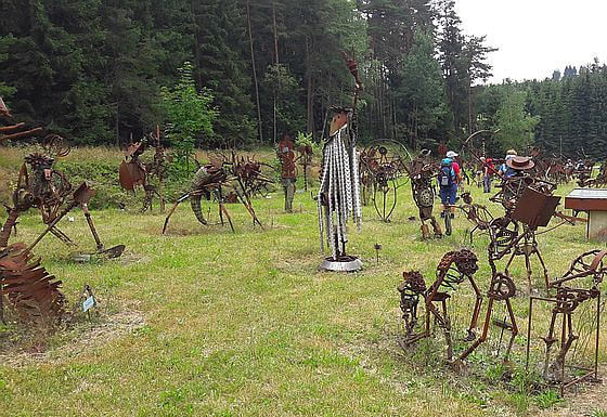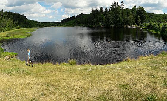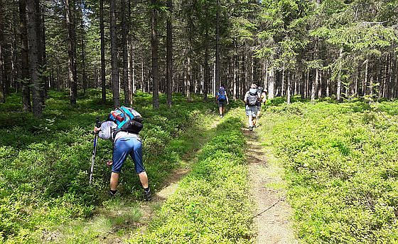 Vom Ausgangspunkt, dem Bärenwald in Arbesbach, führte uns zuerst der Weg zurück über die oberösterreichische Grenze in das Tannermoor und von dort wieder in einer Schleife ins Waldviertel und weiter in den Ort Arbesbach, wo wir die erste Nacht verbrachten. Highlight des Tages war mit Sicherheit der Moorweg-Abschnitt beim Rubner Teich mit dem dunklen Wasser, den vielen Birken und der unberührten Natur. Am zweiten Tag versuchten wir es zuerst mit Höhenmeter - wir bestiegen nach dem Frühstück den "Stockzahn des Waldviertels", den Turm der Burgruine in Arbesbach - bevor wir wieder viele Weg-Kilometer zurücklegten und entlang des Großen Kamp, durch viel Wald und großartige Felsformationen, wie z.B. den Steinernen Torbogen, bis nach Kirchbach bei Rappottenstein wanderten. Dieser Kleinst-Ort mit einem Kaufhaus von anno dazumals brachte uns die Abgeschiedenheit so mancher Gegenden im Waldviertels erst so richtig zu Bewusstsein.