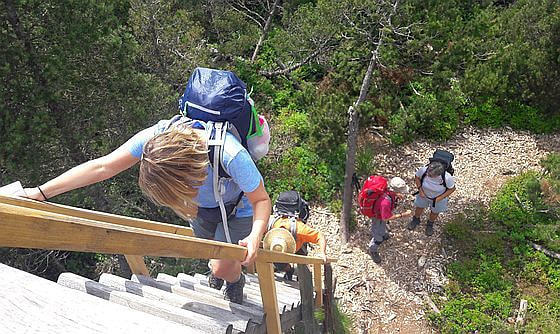 Nach einem reichhaltigen Frühstück starteten wir die abwechslungsreichste, aber auch längste Etappe unserer Viertageswanderung. Über Rappottenstein und vorbei an der Burg ging es hinunter ins Tal des Kleine Kamp. Entlang der "Schütt" und dem Lohnbachfall - ein wunderschöner Wasserfallplatz - marschierten wir weiter zu den beeindruckenden Felsen der Fahrthofer Höhlen und schließlich bis Altmelon, wo wir unsere dritte Nacht verbrachten. Am Samstag wanderten wir noch gemütlich durch die Altmeloner Au zum "Auwächter" und von dort weiter zum Bärenwald, dem Start- und Zielpunkt unseres "einfach_gehen 2019".