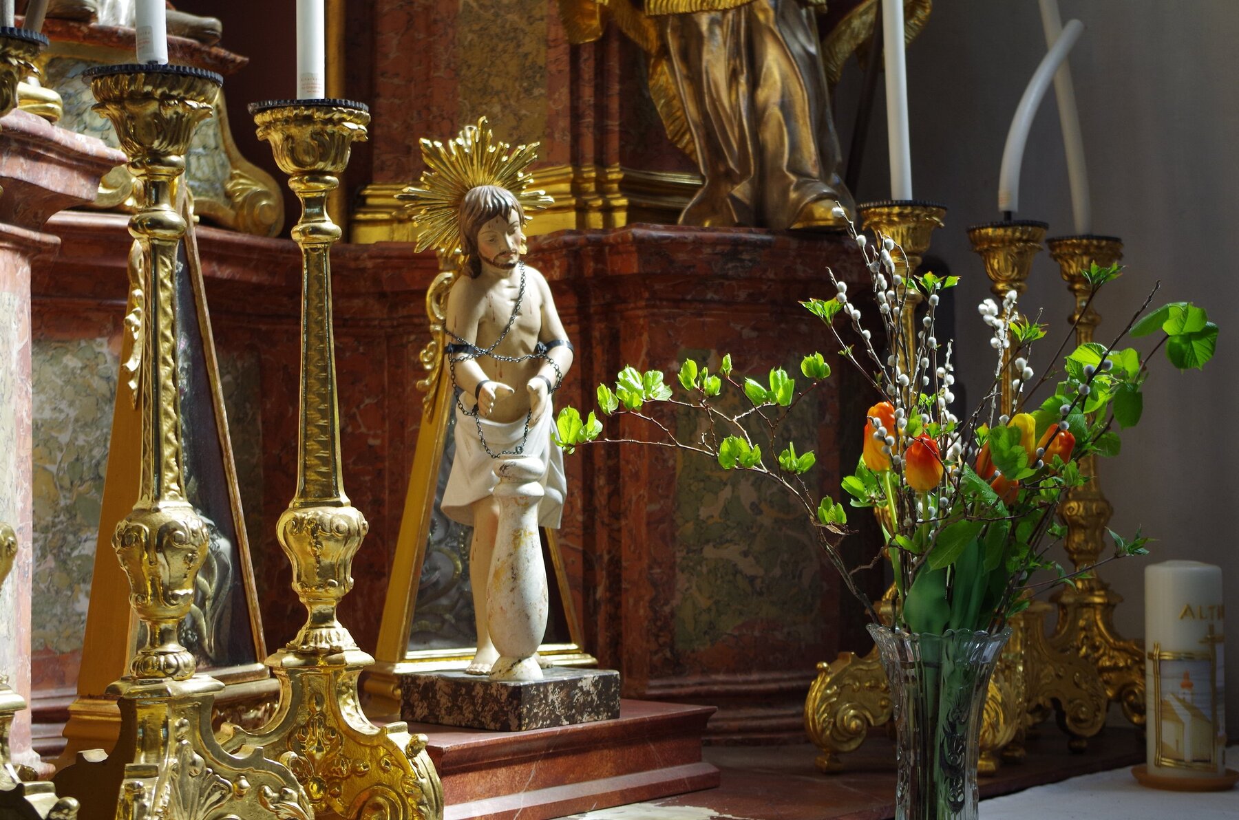 Siehe ebenfalls, neu auf dem Seitenaltar rechts: Jesus an der Geißelsäule.