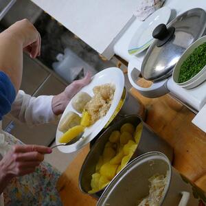 Natürlich war auch unser Buffett-Team unter der Leitung von Rosi Zebenholzer wieder fleissig und so konnte man nach dem Gottesdienst wieder jede Menge verschiedener Knödel genießen und das Festmahl dann mit einem leckeren Stück Kuchen abschließen.