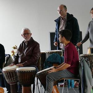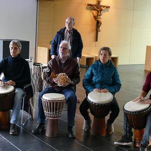 Unter der Leitung von Christian Woritzka stimmte sich das Percussionensemble gleich richtig ein und die ersten Gottesdienstbesucher konnten schon nicht widerstehen und waren vom Rhythmus in den Bann gezogen.