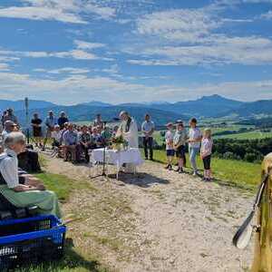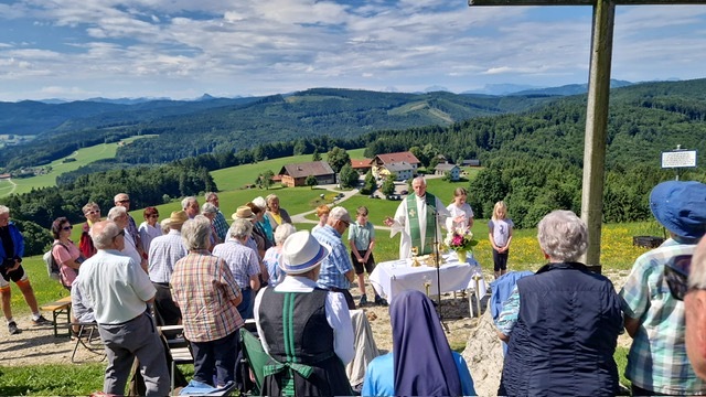Am 13. Juli feierte die Pfarrgemeinde am Lichtenberg einen Gottesdienst in freier Natur. Viele kamen zur Mitfeier auf den beliebten Ausflugsberg in unserer Nähe, einige auch zu Fuß, per Fahrrad oder E-Bike. Das Wetter war herrlich, heiterer Himmel, ein leichtes Lüftchen und es gab wunderbare Fernsicht. In der Predigt sprach Pfarrer Johann Greinegger über die Entfremdung der Menschen von der Natur, von den Mitmenschen und von Gott und gab dabei der Feiergemeinde anregende Gedanken und Fragen zum nachsinnen und bedenken mit. Die musikalische Gestaltung übernahm ein Bläserquartett unter der Leitung von Ernst Ebetsberger. Vielen Dank dem Organisationsteam Anton und Rosa Astegger und allen für's Kommen und Mitfeiern.