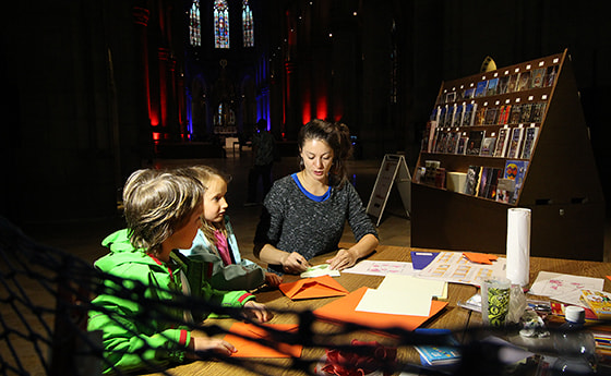Viel Neues zu entdecken gab es für Kinder im Linzer Mariendom, der an diesem Abend zum „Kinderdom“ wurde. So konnten sie mit Domorganist Wolfgang Kreuzhuber die Rudigierorgel mit allen Sinnen erleben. Die Kinder erhielten auch Einblicke in andere Teile des Doms, die sonst nicht zugänglich sind: Bei speziellen Domführungen erkundeten sie den Turm, das Geläut und den Dachboden der größten Kirche Österreichs. Und wer sich künstlerisch betätigen wollte, konnte sich in der Kunst der Kalligrafie versuchen, Mandalas nach Motiven im Dom malen oder mit Hilfe von MitarbeiterInnen der Glaswerkstätten des Stifts Schlierbach bunte Glaskunstwerke anfertigen. Ein Dom aus Spielsteinen errichteten kleine BaumeisterInnen mit Dombaumeister Wolfgang Schaffer – und wer immer schon wissen wollte, was ein Restaurator genau macht, war im Kreativ-Workshop mit Steinmetzmeister Gerhard Fraundorfer genau richtig.
